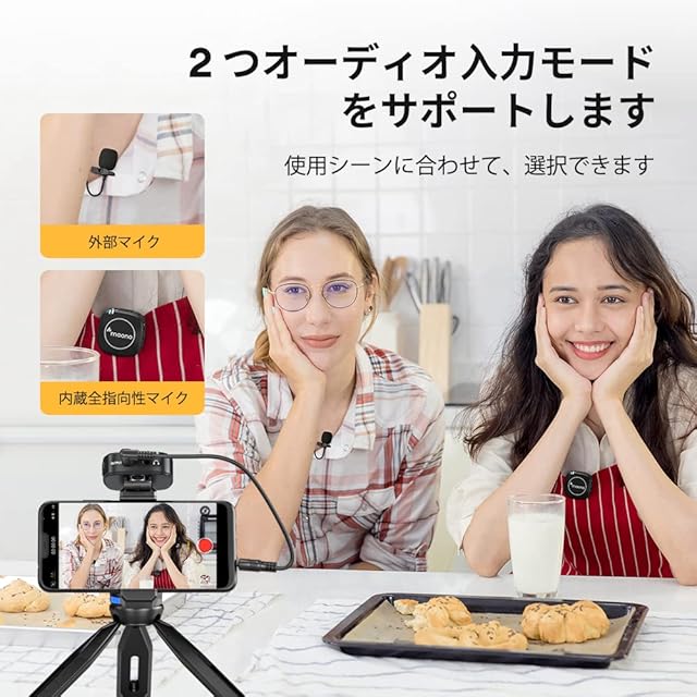 ♬【内蔵/外部マイク】このワイヤレスマイクは、プロなオーディオチップを採用して、無指向性マイクを内蔵されます。 ノイズ低減、広い周波数応答、82db S / N比により、 原音を伝えます。 3.5mm外部ピンマイクを付きます、 使用シーンに合わせて、マイク入力モード選択できます。