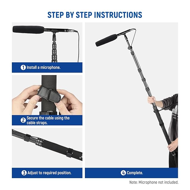 【軽量&丈夫】軽量ブームは重量がわずか580gで、フォームハンドルで持ちやすく、ある場所から別の場所への音源をキャプチャできます。炭素繊維素材は、屋外での録音に適した腐食や湿気に耐性があります。