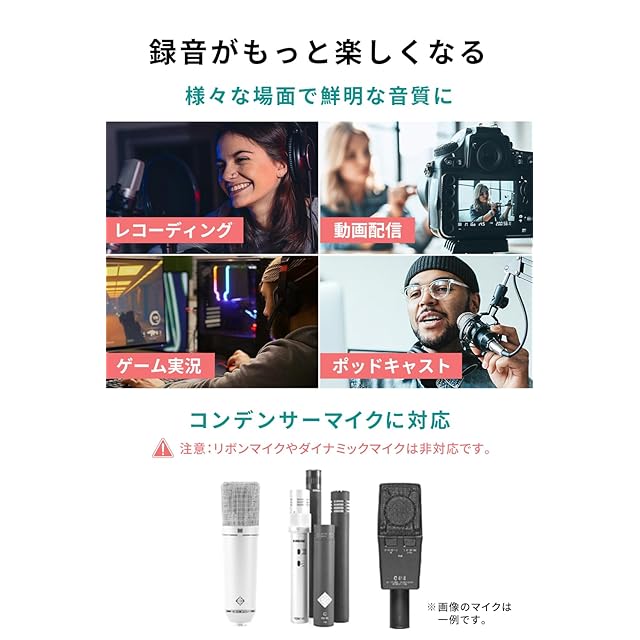 ✅【 クリアで大きく、伝わる喜び 】気になるノイズやゆがみを抑制。クリアで鮮明な、より良いサウンドが作れるようになります。 レコーディング、カメラマイク、ゲーミング、動画配信など様々な場面でクリーンな音を体感できます。