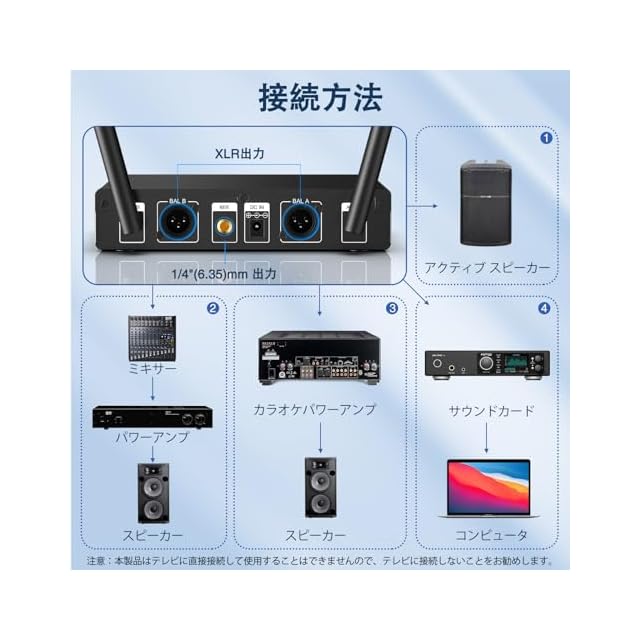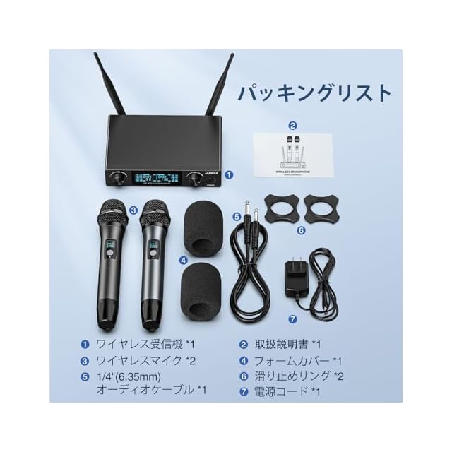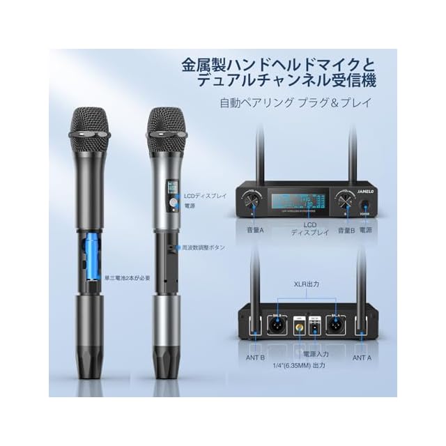 JAMELO ワイヤレスマイク 金属デュアルUHF ダイナミックマイク コードレス 6.35mmオーディオケーブル付き ハンドヘルドマイク システム(UHF 60M範囲)