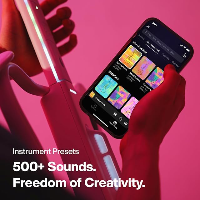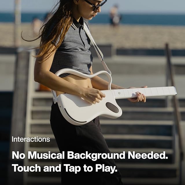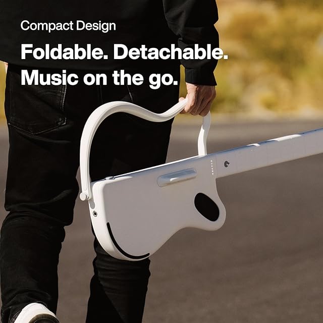 LAVA GENIE サンプラーギター、弦なし、数百の楽器プリセット、オンボードスピーカー、折りたたみ式、取り外し可能、ホワイト、30.5 インチ。