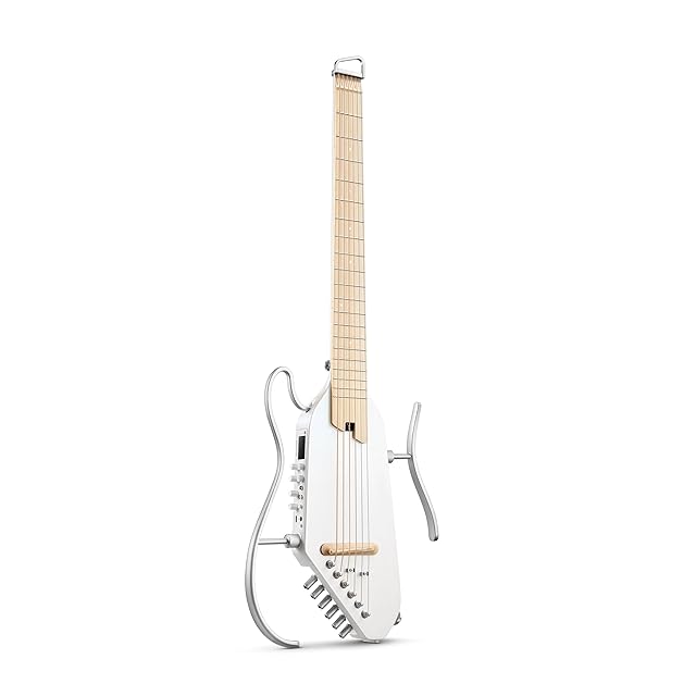 Donner HUSH-I PROトラベルギター ポータブルギター スマート ヘッドレスギター 複数のエフェクトモード 人間工学ネック 静粛性 イヤホン付きセット 着脱可能フレーム 白