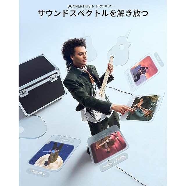 【豊かなトーンでストラム】 よりプロフェッショナルで複雑なサウンド・アルゴリズムと高品位なオーディオ・サンプリング・レートをサポートするため、Donner独自のサウンド・アルゴリズム・プラットフォームによってアップグレードされたH1プリアンプ・システムを利用することで、Donner スマート ギターは数十種類のエフェクト アルゴリズムの組み合わせを実現します。