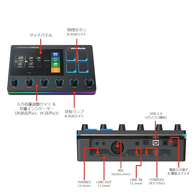 AVerMedia LIVE STREAMER NEXUS AX310 オーディオミキサー & 配信者向けコントロールセンター DV602