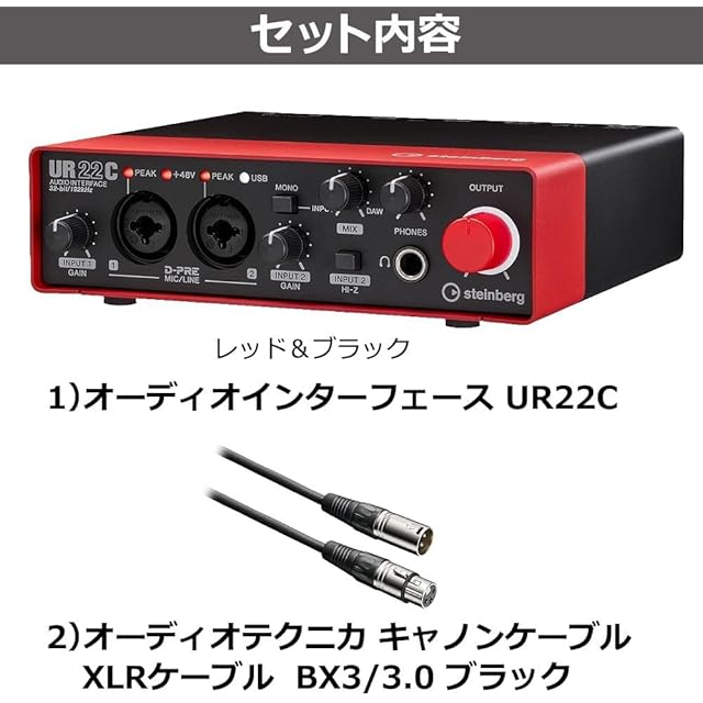 スタインバーグ USB オーディオインターフェース UR22C レッド&ブラック キャノンケーブル セット