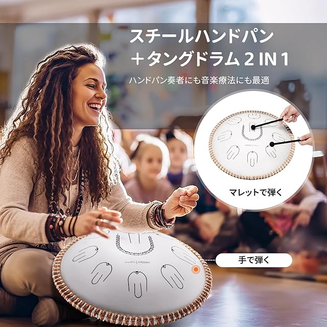 【リズムとビートの旋律】リズムに合わせて弾くだけで、アマラ音階の楽しい曲が生まれます。直感に従って、付属のマレットや指を使って演奏してください。音楽的なバックグラウンドに関係なく、この楽器で美しく心地よいメロディーとビートを奏でることができます。