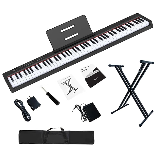 IKTMI 電子ピアノ 88鍵盤 軽量 ポータブルピアノスタンドセット 電子 ピアノ 88鍵 Piano スリムデザイン ペダル付き 充電型ピアノ MIDI対応 子供 初心者 練習用 楽器 日本語説明書付き ブラック