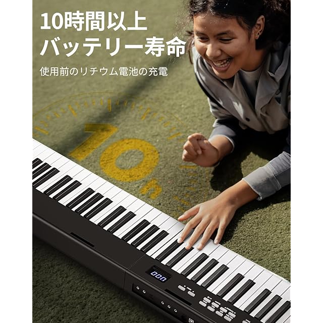 【充電式電子ピアノ】高品質のリチウム電池を搭載したStarfavorキーボードピアノは、1回の充電で最大10時間の連続使用が可能。ご自宅の練習、子供のピアノ授業練習、野外コンサートなど電源の確保が難しい場所でも自由に演奏できます。