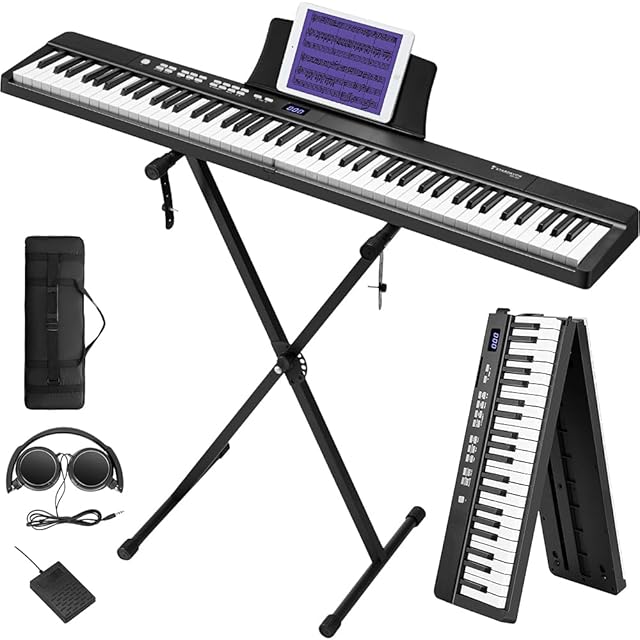 Starfavor 電子ピアノ88鍵盤 折り畳み式 充電型 198 種音色、198種 リズム、MIDI機能 携帯型 軽量 キーボード スタンド、ペタル、収納バッグ付き 日本語説明書 初心者 子供 ピアノ練習 教学 SP-15F