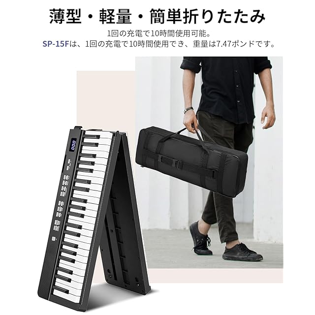 【折りたたみ電子ピアノ】Starfavor SP-15F 88鍵ポータブルピアノは、簡単に折りたたむことができ、キャリングバッグに整理することができます。超軽量なので、いつでもどこでもステージをセットして演奏を始めることができます。