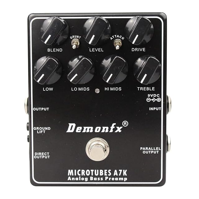 DemonfxのMICROTUBES A7Kは、アナログベースプリアンプとして、豊かな音質を提供します。特に、低音域から高音域までの調整が可能で、様々な音楽スタイルに対応します。