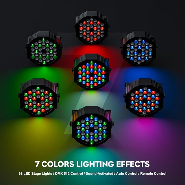 ZonQoonz 4パック 36LED RGB 舞台照明 ステージライト ビームスポットライト リモコン付き DMX制御 音声起動 アクティビティライト ステージ照明 パーライト ステージパフォーマンス/ミラーボール/ディスコ/ホームパーティー/誕生日パーティー/バー/カラオケ/dj/結婚式に最適 (4個)