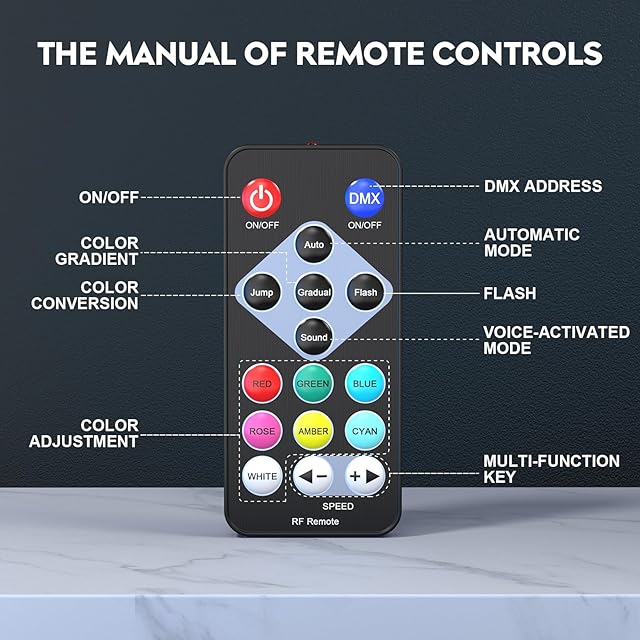 【複数の制御方法】このDJパーティーライトは、自動、音声制御、リモコン、DMX制御の4つのモードをサポートし、照明効果を制御し、さまざまなシーンのニーズに柔軟に適応でき、自分の好みに応じて自由に選択できます。