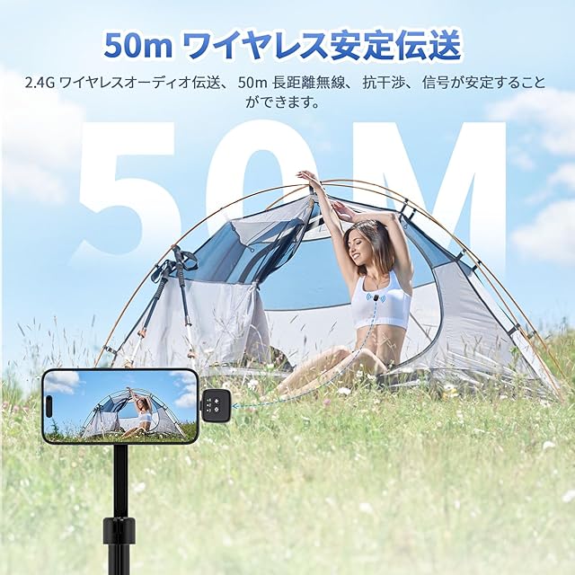 【小型で持ち運びに便利】僅か11gの超軽量ワイヤレスマイクで、長時間装着時の疲労を軽減でき、片手で簡単且つ安定に取り付けられます。更に、持ち運ぶ時の充電ケースについてもコンパクトでポケットに収まることができます。配信や収録に両手も解放されて録音でき、室内でも屋外でも使えるワイヤレスピンマイクセットです。