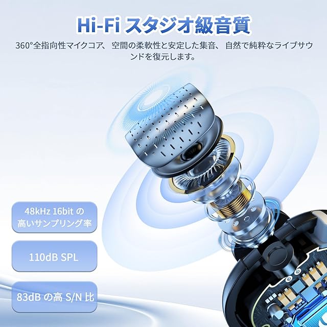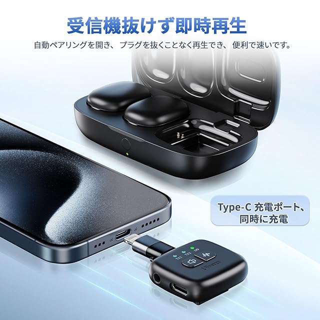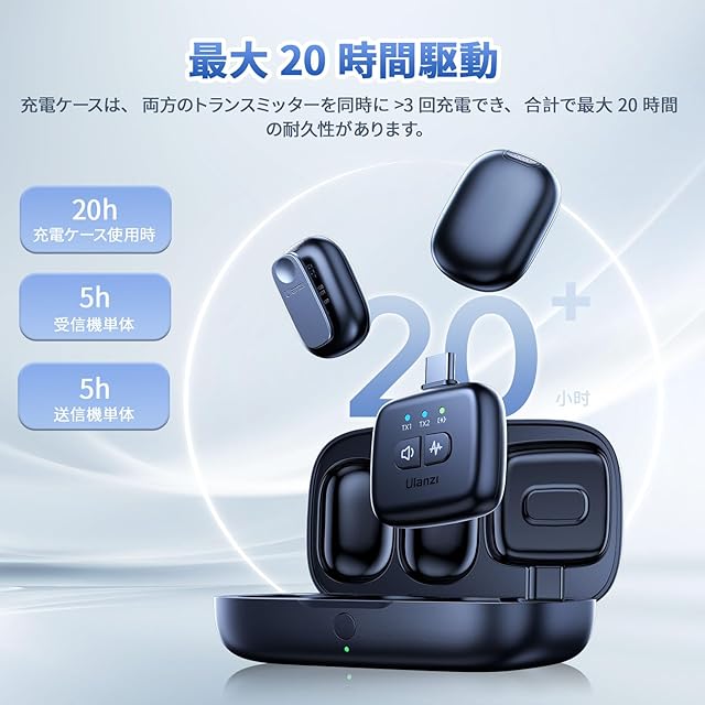 【最大20時間のバッテリー駆動時間】1000mAh充電ケースバッテリー内蔵され、70mAhマイクバッテリーが内蔵され、約5時間使用でき、マイクを3 回充電できます、充電ケースと合わせて最大20時間まで使用できます。