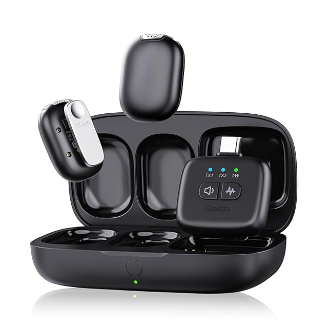 Ulanzi A30 ワイヤレスマイク ピンマイク スマホ外付けマイク 50M伝送距離 2.4GHz 20時間バッテリー駆動 ノイズキャンセリング 瞬時接続 自動ペアリング 2人同時使用可能 収納充電ケース付き マグネット&クリップ式 小型軽量 iPhone/Android/カメラなど対応 web会議 Vlog撮影 インタビュー 生放送等適用 MFi認証取得
