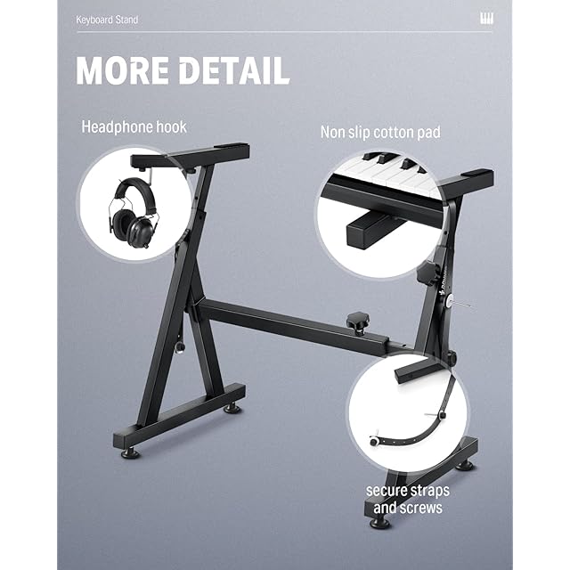 【豊富な機能】Donnerピアノ台には、ヘッドホンストラップ、電子キーボード固定テープ、滑り止めバブルなどの部品も含まれており、キーボードに万全の保護を提供しています。電子ピアノ・キーボードなどの製品が安全に放置することが確保しています