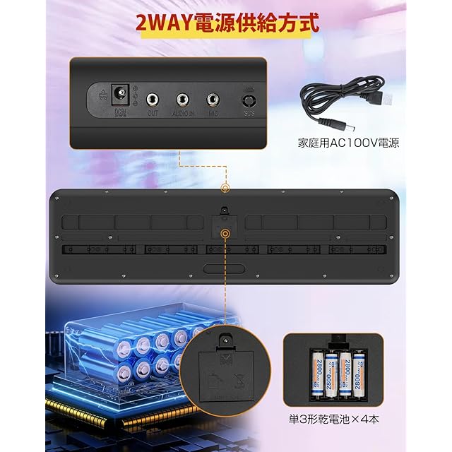 【USB給電式&電池給電式】電池給電式(別売り):1.5 V 単三電池x4本を正確な極性で取り付けてください。USB充電:付属のUSBケーブルを使用し、電子ピアノの給電以外の用途にアダプターを使用しないでください。