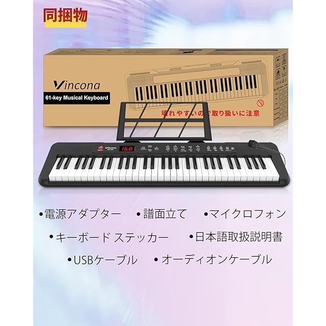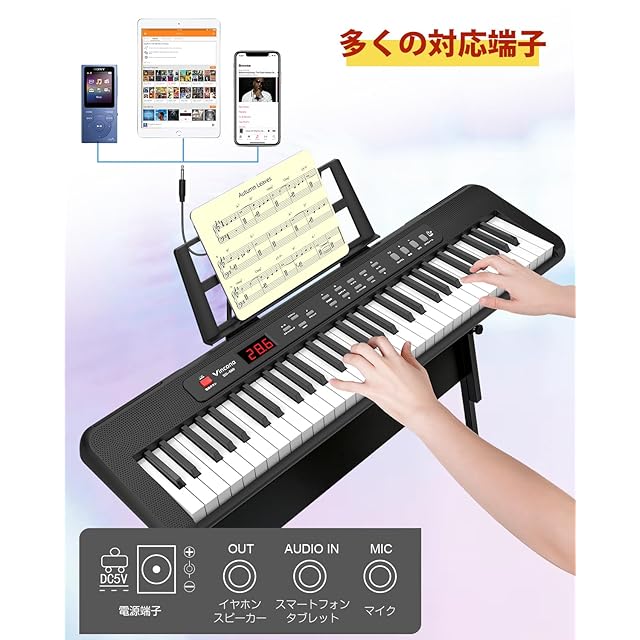 電子ピアノ 61鍵盤 電子キーボード キーボード ピアノ 60デモ曲 200音色 200リズム内蔵 電子キーボード LCDディスプレイ搭載 初心者 持ち運び 軽量 電子ピアノ 日本語で表記 日本語取扱説明書
