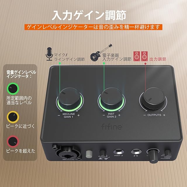 FIFINE USBオーディオインターフェイス 2入力2出力 XLRマイク接続 楽器入力対応 音声モニタリング可能 ゲイン調節ノブ 48Vファンタム電源 楽器/ギター/音楽 ビデオ/動画作成 録音/実況/配信 ポッドキャスト オーディオミキサー ボーカル用 Amplitank SC1