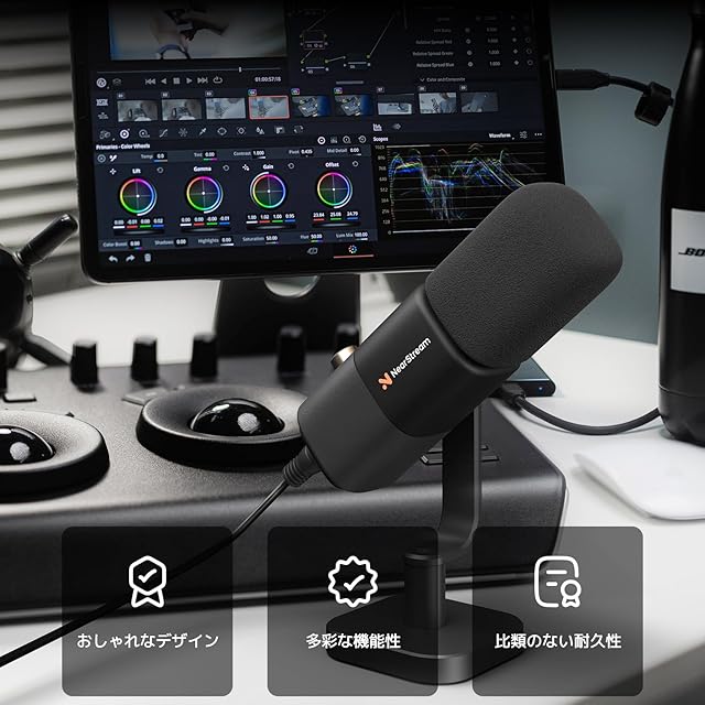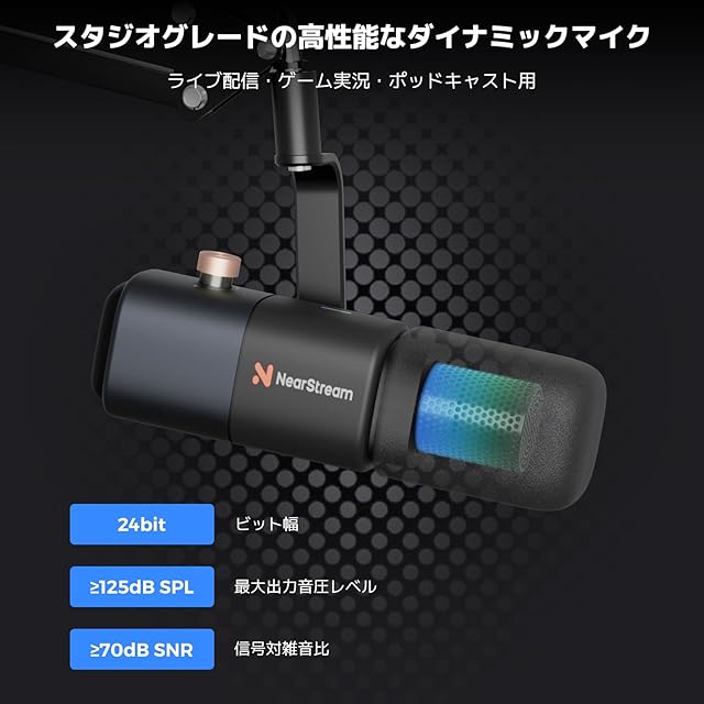 NearStream ダイナミックマイク PC 有線 超単一指向性 USB2.0 Type-C XLR端子搭載 3.5mmヘッドホンジャック 音量調整可能 ノイズ低減 ミュート(解除) 30cm収音距離 ブームアームスタンド/フォームウインドスクリーン付き 録音/ライブ配信/ゲーム実況/Web会議用 Windows/Mac/Linux/Chrome対応 ブラック AM10X