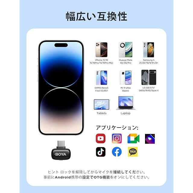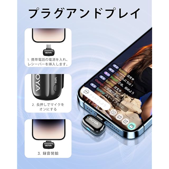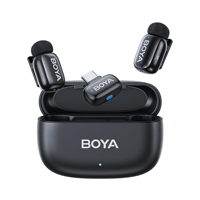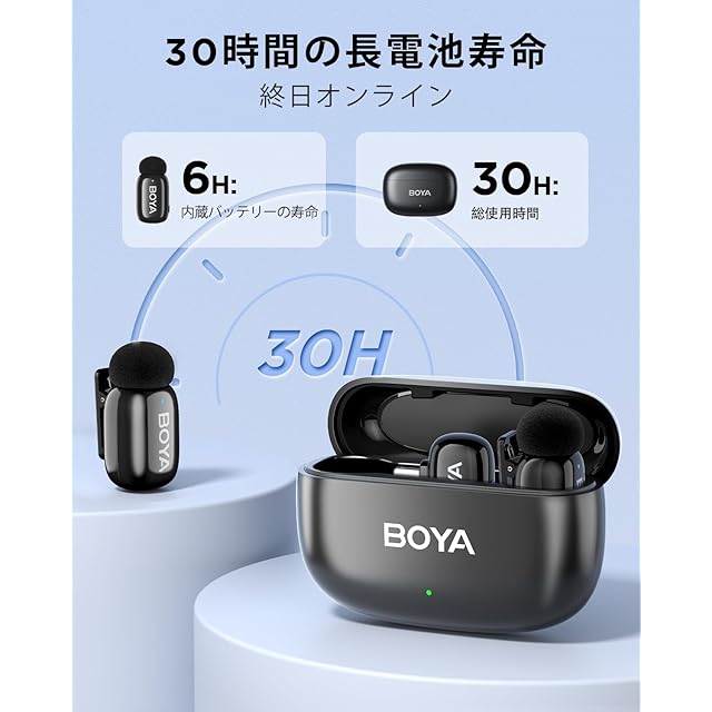 BOYA Mini ワイヤレスラベリアマイク Android/iPhone15 16/PC対応 USB-Cプラグ、ノイズキャンセリング、充電ケース付きで30時間バッテリー駆動、AI音声チェンジャー、ビデオ録画・ポッドキャスト用ラペルマイク