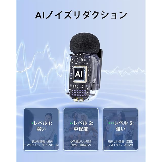 【革新的なAI音声変更】このワイヤレスマイクは、AI音声モジュレーションをサポートします。AI機能が有効になると、RXの上部にあるインジケーターライトが青く点灯します。青いフラッシュ1回で「男性の声」、2回で「女性の声」、3回で元の音声に戻ります。3つのAI音声オプションで、さまざまなトーンを楽しみ、インタラクションをよりエンターテイニングにできます。