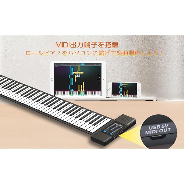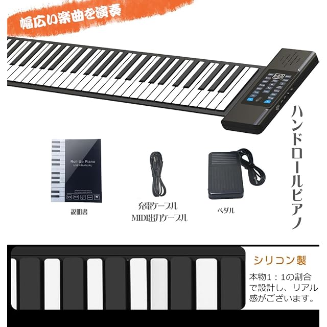 Shenytic ロールピアノ 88鍵盤 電子ピアノ シリコン製 リアル感 練習用 電池内蔵 持ち運びロールピアノ くるくる巻けてコンパクト!