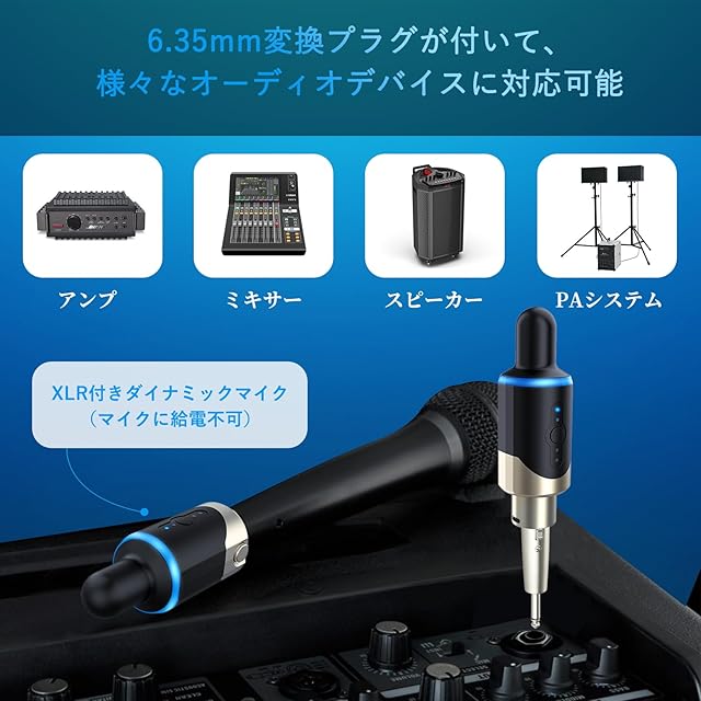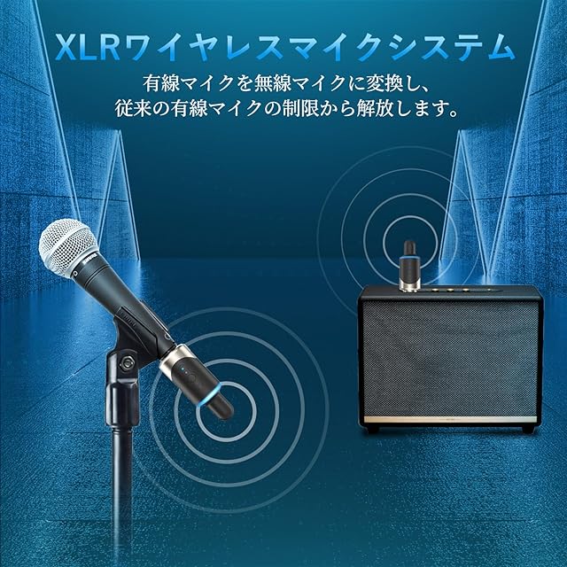 【XLRワイヤレスシステム】XLRトランスミッターは、様々なダイナミックマイクで使用できます。 XLRワイヤレストランスミッターを使用すると、有線マイクを無線マイクに変換し、従来の有線マイクの制限から解放します。(※本製品はマイクとスピーカーが付いていません。送信機はマイクに給電できません。)