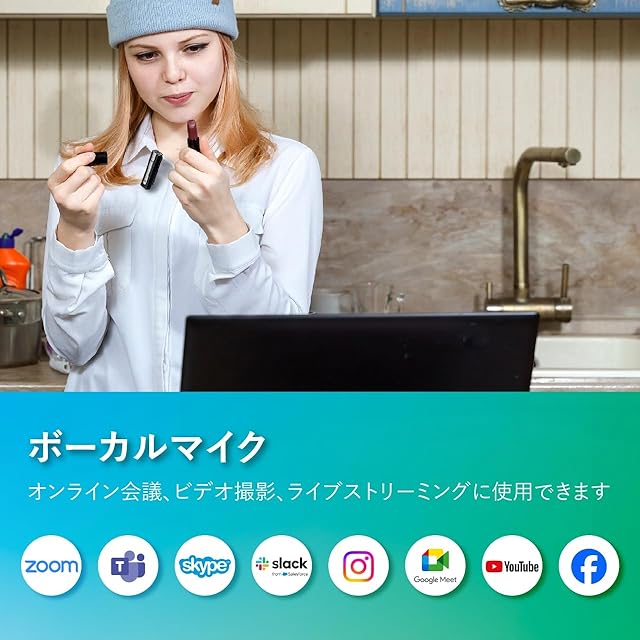 仕事やオンライン授業、オンライン会議に欠かせないミニマイク。ワイヤレスのため、自由な動きが可能。レシーバー不要で簡単設定。