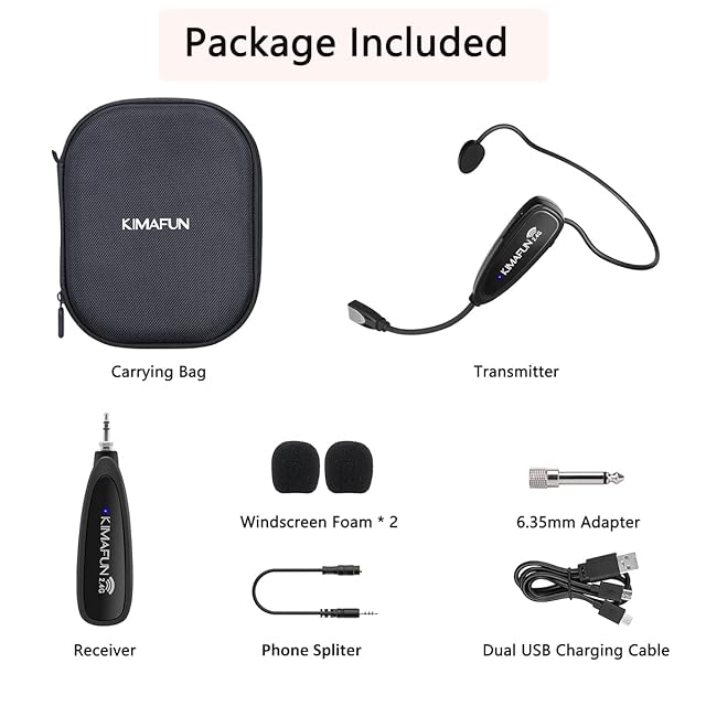 フィットネスワイヤレスマイク KIMAFUN2.4G無線防水ヘッドセットマイク 30m伝送範囲 自動ペア 耳掛式 送信機と3.5mmステレオプラグ受信機付き スピーカー、PC、スマートフォン用 フィットネス/スピニング/ヨガコーチに最適(G100)