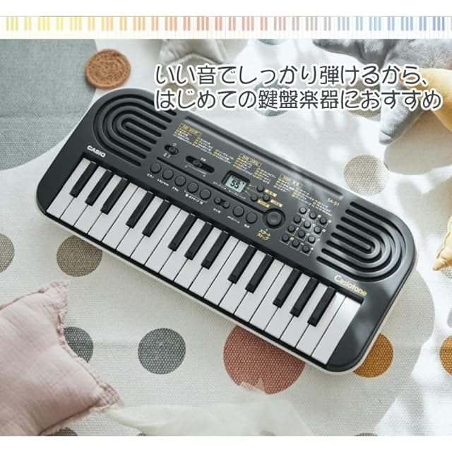 いい音でしっかり弾けるから、はじめての鍵盤楽器におすすめ。 コンパクトなボディに、たくさんの美しい音色、リズム、機能を搭載。 小さい手でも弾きやすい、手軽に弾ける32ミニ鍵盤 本物の楽器からサンプリングしたピアノ、管楽器、打楽器など、いろいろな楽器の高音質な音色を100種類内蔵