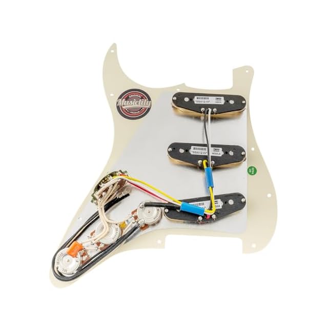 Musiclily Pro SSSストラト配線済みピックガードArtec Staggered アルニコ5 シングルコイルピックアップ搭載 STストラトキャスターエレキギター用、クリーム3P