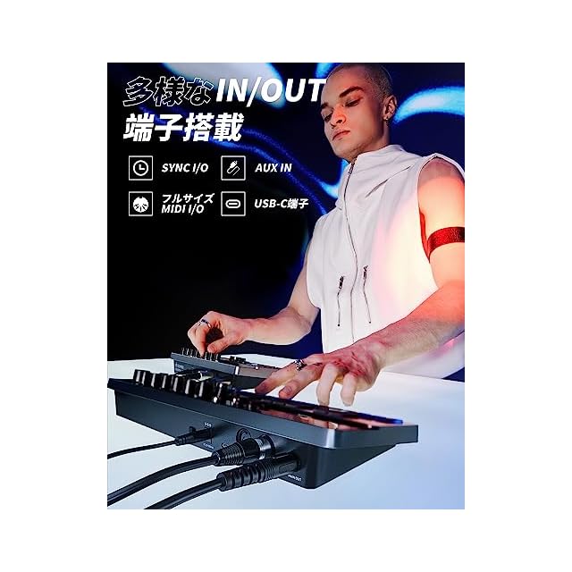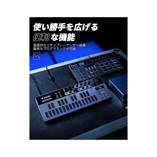 【シンプルな操作体系】Donner Essential B1には、128種類の電子音楽ジャンルのプリセットと128種類のユーザープログラム可能なプリセットを搭載し、より直感的に自分だけの音楽を作曲することをサポートします。USB-MIDI接続により、Essential B1はDAWに接続し、MIDIコントローラーとして機能させることができます