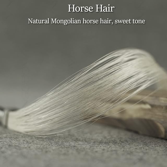 【自然なホースヘア】当該モデルはモンゴル産の無漂白の馬毛を使用したために、弾力性が高く、ロジンがしやすいことになります。