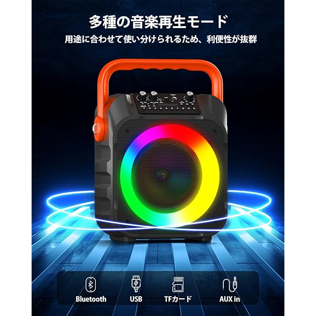 【操作簡単!稼働状況を一目で把握できる】デジタルディスプレイを搭載しており、稼働状況を一目で確認できます。Bluetooth接続ではなく、AUX輸入、TFカード、USBドライバにも対応し、収録された音楽を簡単に再生することができます。6.35mmマイク入力端子を搭載しており、有線マイクとギターなど楽器にも適用です。