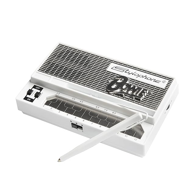 クラシックなアナログシンセ&ベースサウンドのための3つのモード。ビブラートスイッチ。外出先で再生するための内蔵スピーカー。静かな練習のためのヘッドホンソケット。必要なバッテリー: 単3 x 3 (別売り)。トップのヒント - 出荷中の腐食やその他の損傷からスタイロフォンを保護するために、キーボードとスタイラスチップに保護コーティングが施されており、スタイラスフォンを再生すると「パチパチ」という音がすることがあります。 柔らかい布やコンタクトクリーナーでこするだけで簡単に取り除くことができます。