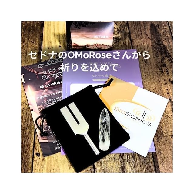[セドナの魔法]biosonics社製 クリスタルチューナー 浄化チューナー 4096Hz 水晶ポイント ポーチ 特製 オリジナル日本語説明書 英語解説書付き サウンドヒーリング入門者向け6点セット