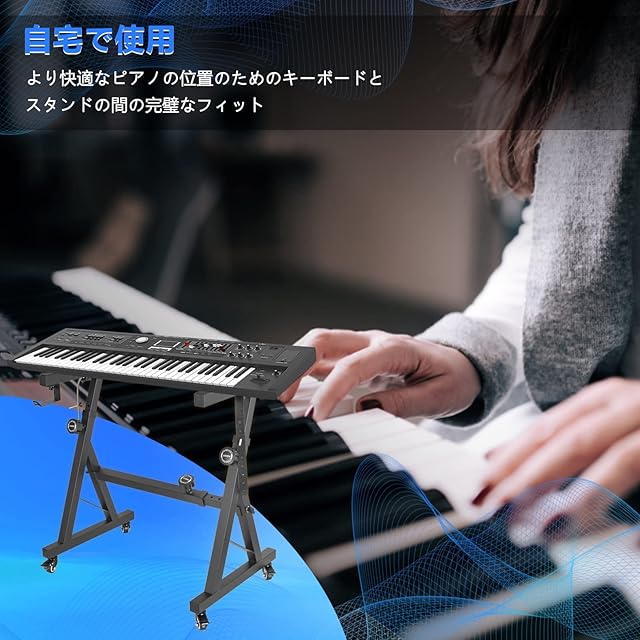 調節可能:スタンドの高さと幅は調整可能です。最大高さ:62-92cm、最大长:57-90cm。自分の電子ピアノに合わせて調整することができます。注:電子ピアノは含まれていません。