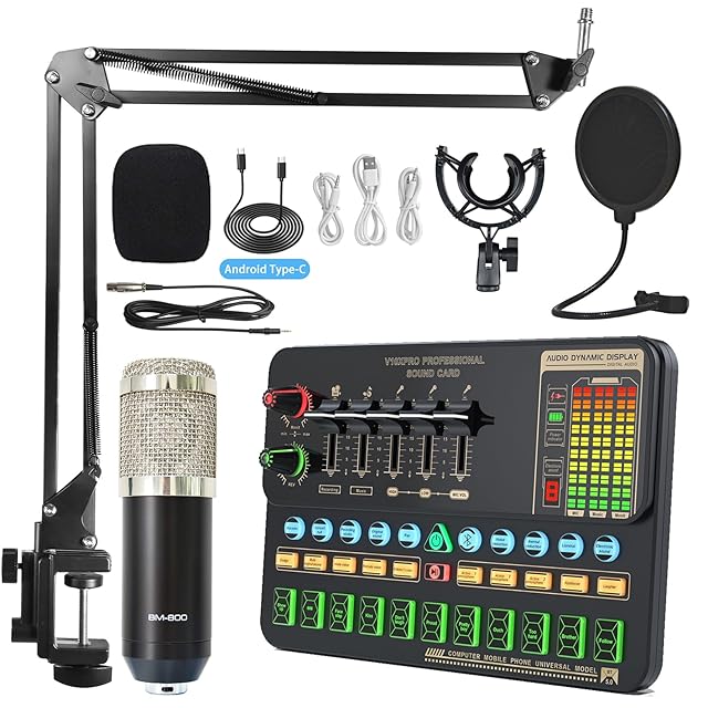 【セット内容】オーディオミキサー×1、コンデンサーマイク×1、マイクスタンド×1、マイクホルター×1、ポップガード×1、ポップフィルター×1、Type-Cケーブル×1、接続用ケーブル×4。