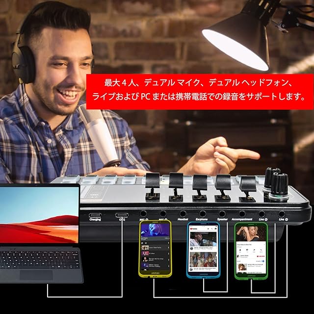 オーディオミキサー 生放送用 コンデンサー マイク付き 機器セット3.5mmオーディオインターフェース ゲーム実況 生放送 録音 日本語説明書付き