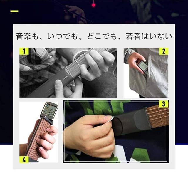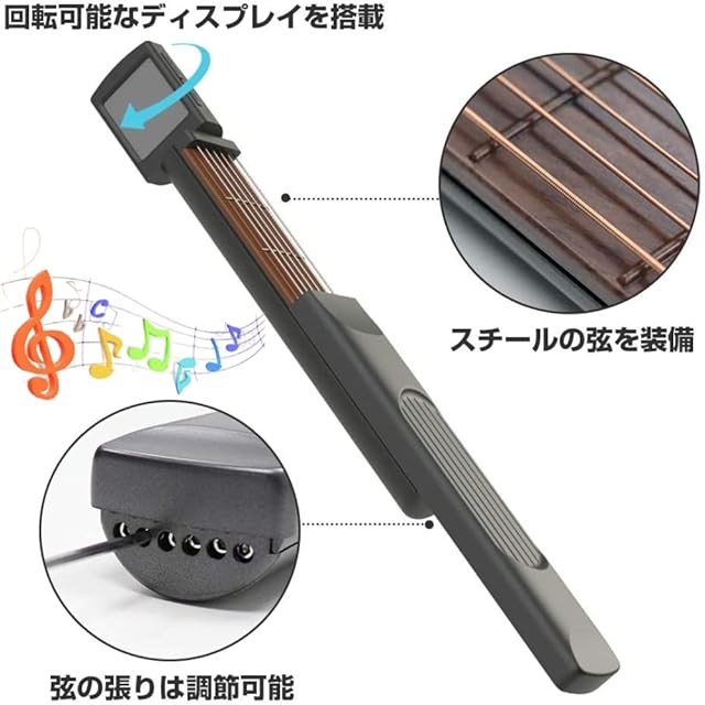 ポケットギター コードトレーナー 回転可能 軽量 ポータブル ノイズ無し 贈り物 クリスマス 耐干渉 6弦 ギター練習ツール 和音チャート画面 保護袋付き 初心者対応