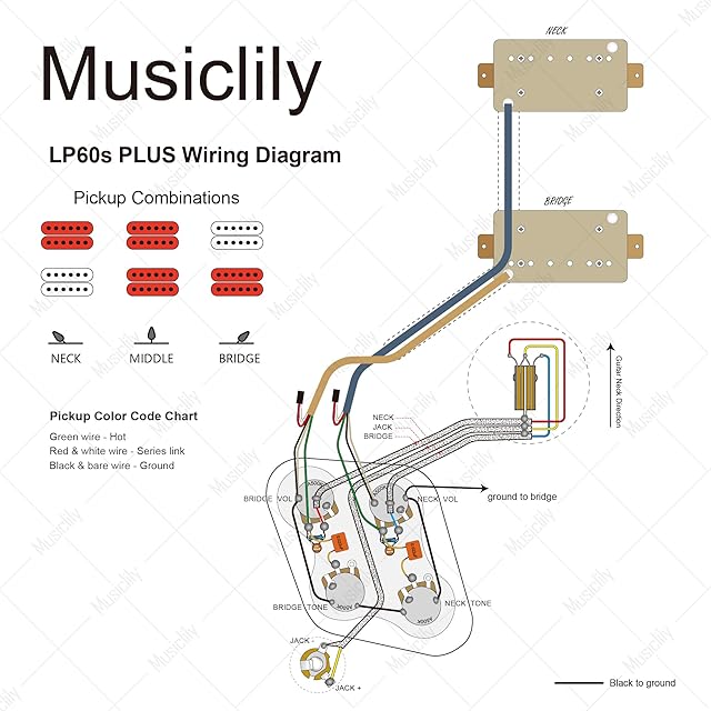 Musiclily Pro LPスタンダード モダンな60s PLUS Treble Bleed 配線済みキットレスポールエレキギター用 ニッケルスイッチ