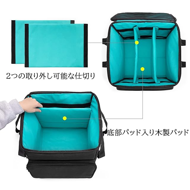 【耐久性抜群】レコード収納バッグは丈夫なナイロン素材でできており、レコードを摩耗から保護します。高品質の素材と補強されたステッチが耐引裂性と耐久性を提供します。レコードを損傷から保護するために、底部に木製のパッドが追加されています。