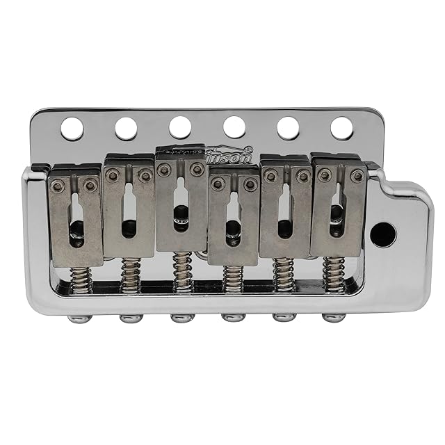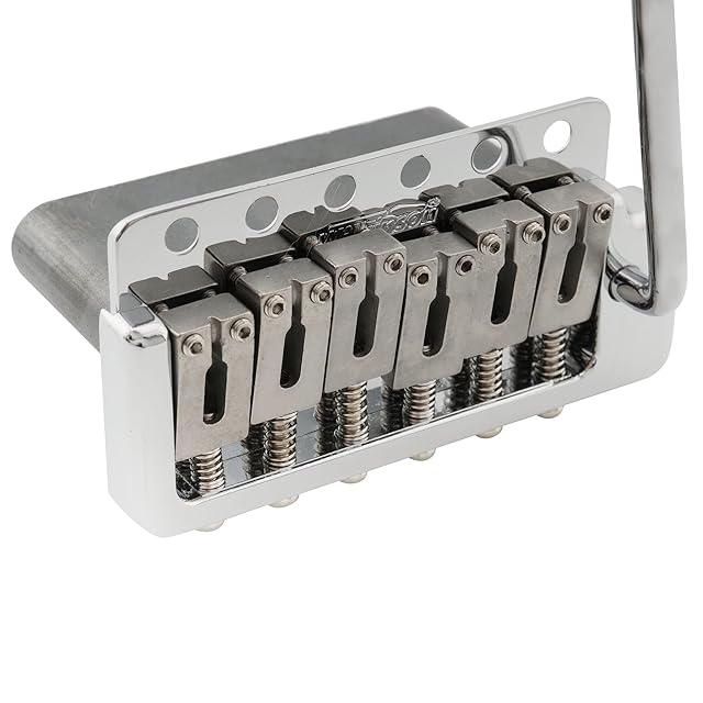 韓国製でMusiclilyが販売しているWilkinson純正パーツ。SUSステンレス鋼のサドル、究極の快適さと性能。深さ41mmの重厚なフルスチールブロック、トレモロアームを押し込みます(ブロックの小さな六角ネジで調整します)。