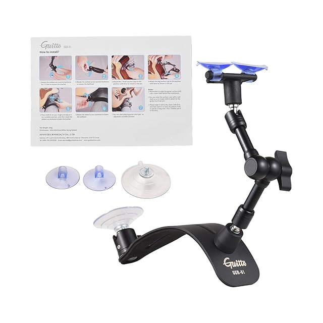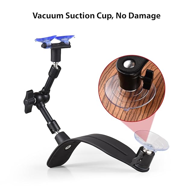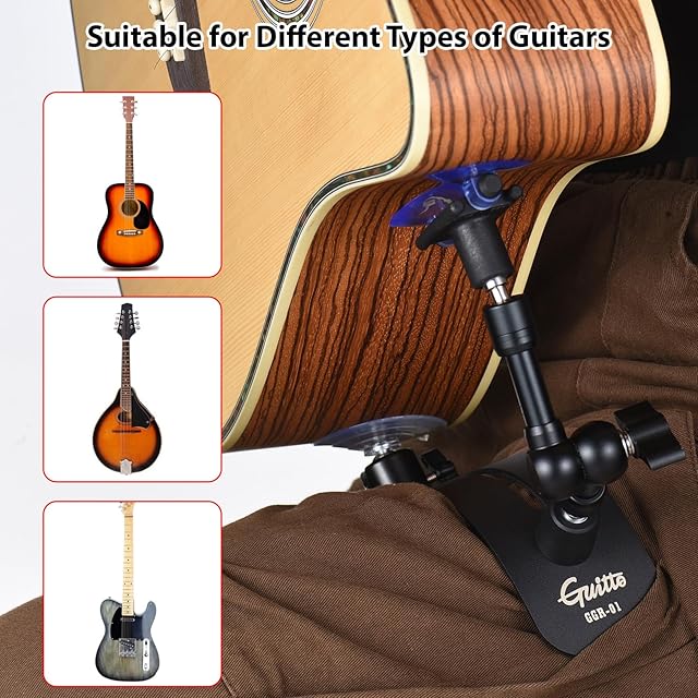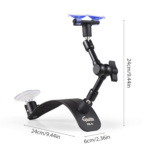 【調節可能で多用途】: このギター吸盤スタンドは、最大21cmまで調節できる2セグメントアーム設計を採用しています。スタンドアームはユニバーサルボールヘッドに接続されており、高精度で幅広い調整が可能です。操作が簡単で、ギターの持ち方の習慣に完全に対応できます。
