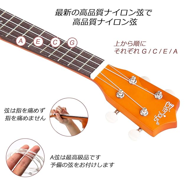 21インチウクレレは、ボディにバスウッド、ネックにソリッドウッド、フィンガーボードとブリッジにブラックウッドを使用しています。ナイロン弦と環境にやさしいデザインで、お気に入りの楽器になるでしょう。