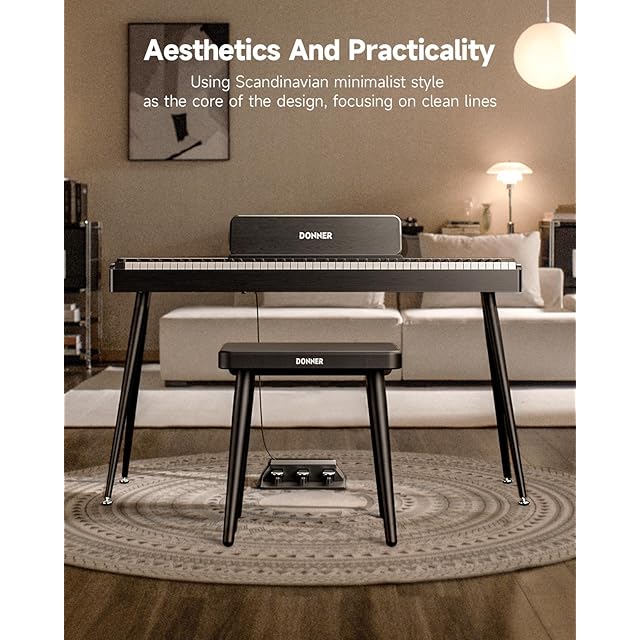 【上品感溢れる仕上がり】シンプルで洗練されたスカンジナビアスタイルがDKB-100キーボードベンチの魅力な特徴。ご自宅やモダンなリビングスペースに置いても、すっきりとしたラインで、どんなインテリアにもマッチします。