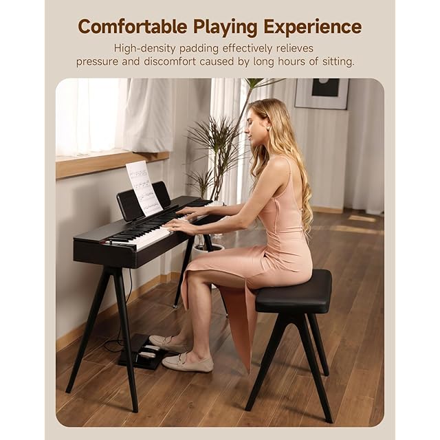 【快適な座面】このピアノベンチは高級感溢れる合成レザーを採用し、ソフトで心地よい手触りをもたらします。通気性に優れたデザインで、熱による不快感を防ぎ、長時間の練習でも快適な座り心地を実現します。