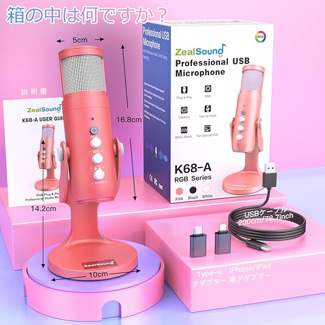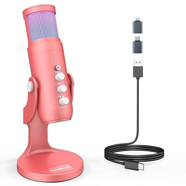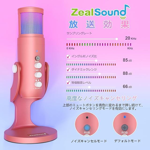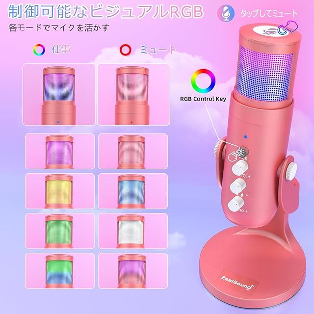 ZealSound PC コンデンサーマイク ゲーミングマイク RBG USB マイク アダプター付き プラグアンドプレイ ストリーミング ポッドキャスト録音 サイレントタッチ ゲインコントロール ヘッドフォンモニタリング ノイズキャンセリング マイクスタンド付き Windows/Mac / PS4&5 / i*Phone/Android 対応